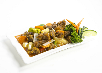 Beef "Shuang Dong" with Chinese mushrooms Wok fried beef meat with oyster sauce, Chinese mushrooms and bamboo sprouts